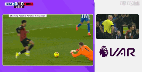 富勒姆本輪早些時候在客場輸球,這是布萊頓反超超過富勒姆沖進上半區的機會。開場后主場作戰的布萊頓稍占上風,第2分鐘,布萊頓中場大范圍轉移到左側,卡迪奧格魯45度角處將球拿住,隨后橫切到禁區角上大力兜射,門將彼德羅維奇奮力將球撲住。第27分鐘,伯恩茅斯左路快速反擊,塔弗尼爾帶球高速推到禁區角上精妙斜塞中路,阿德利后排插上小禁區前沿搶點時被出擊的門將費布魯亨撲倒。主裁第一時間認為沒有問題,但他親自到場邊觀看VAR后改判,吹罰了點球。塔弗尼爾操刀主罰一蹴而就,伯恩茅斯1:0首開紀錄。