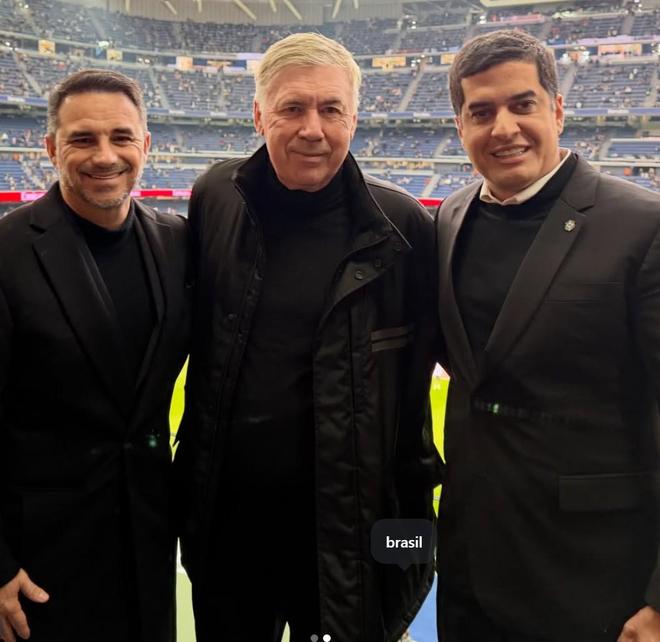 本輪西甲,皇馬主場(chǎng)以2-0擊敗萊萬(wàn)特。今日,前皇馬主帥安切洛蒂在社交媒體上曬出了自己重返伯納烏的照片,并配文寫(xiě)道:“看到皇馬取勝真的非常開(kāi)心!和我在巴西國(guó)家隊(duì)的同僚一起分享這份勝利。”