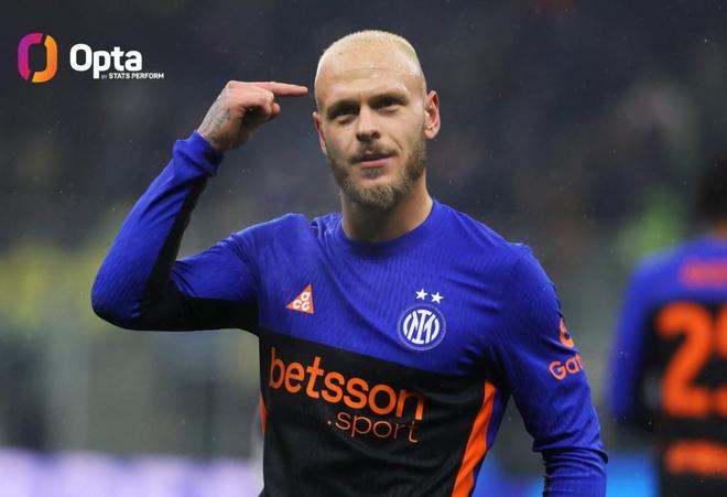 2射1傳,迪馬爾科成有統計以來國米首位意甲單場造3球的后衛