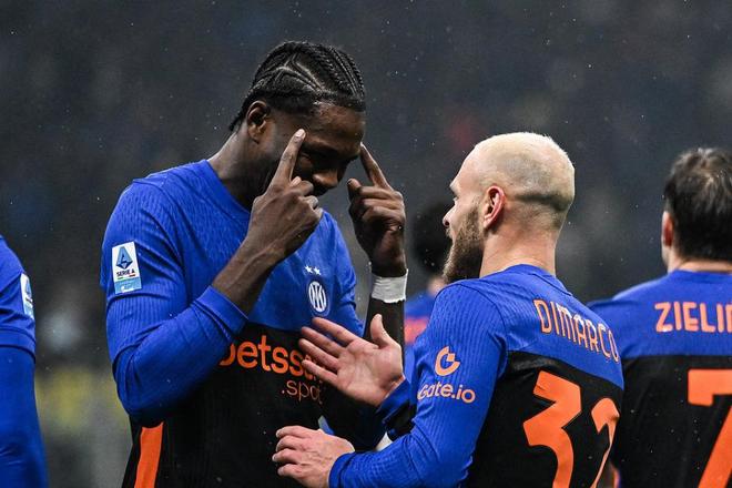 易邊再戰,國米在比賽尾聲再次爆發。第81分鐘,迪馬爾科凌空彈射連打兩個門柱后破門,幫助國米擴大優勢。