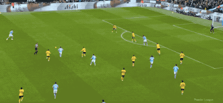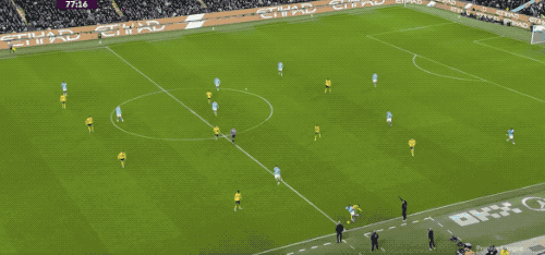 面對曼城的強勢進攻,狼隊的防線越來越松懈,體能也有些跟不上。上半場補時階段,曼城在前場連續一腳傳球,B席助攻,塞梅尼奧破門得分。
