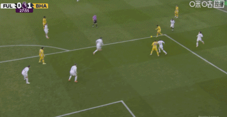 第28分鐘,阿亞里內切勁射破門,布萊頓1-0富勒姆