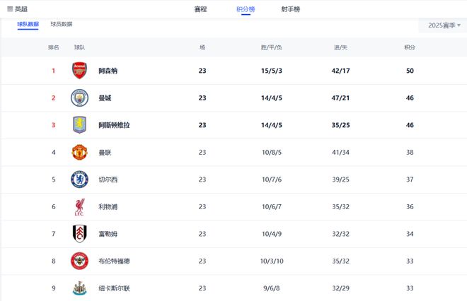 北京時間1月26日凌晨,2025/26賽季英超聯賽上演一場焦點戰。上一輪主場擊敗英超第2曼城的曼聯再接再厲,客場3-2拿下領頭羊阿森納。2場含金量十足的比賽撈足6分后,曼聯終于如愿以償殺進了積分榜前四。而英超積分榜前六也再現豪門球隊齊聚的盛況。只可惜,其中并沒有熱刺。